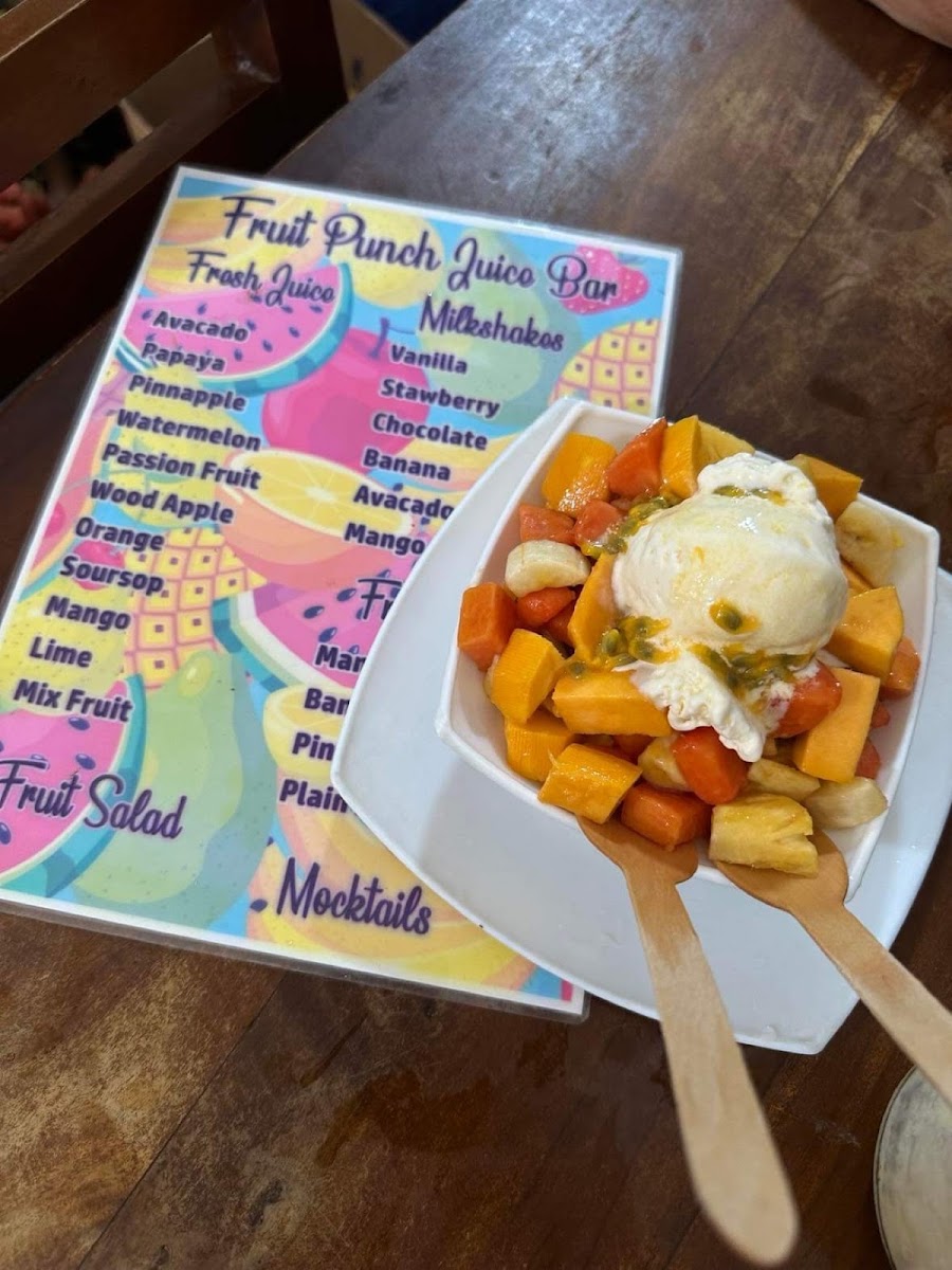 Introducing the menu at Fruit Punch - Fruit Shop & Juice Bar is like stepping into a refreshing oasis in Dikwella, Sri Lanka. This café specializes in vibrant smoothies and mouth-watering fruit salads, making it a must-visit for anyone wanting a taste of tropical delights. Guests rave about the best smoothies in Sri Lanka, crafted with fresh, locally sourced fruits. The fruit salad stands out, often enjoyed with a scoop of vanilla ice cream and sprinkles, adding a delightful twist to a classic dish.